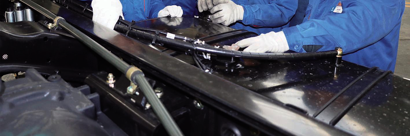 调试4班班长李飞(左一)正在讲解独立暖风燃油管路供给原理